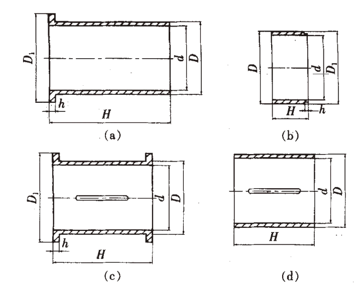 上述图1a、1b所示的轴承也可采用双金属结构。即外层为底基金属,内孔为铸造铜合金。一般孔径在200mm以内的滑动轴承,铜合金壁厚3mm,采用离心式浇铸获得。若用这一结构,节材效果明显。